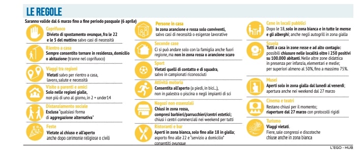 Dal 26 aprile dunque entreranno in vigore nuove regole, consistenti in un allentamento delle misure restrittive nelle zone gialle.